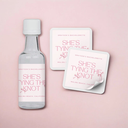 Tying the Knot Bachelorette Party Mini Liquor Label - White & Pink