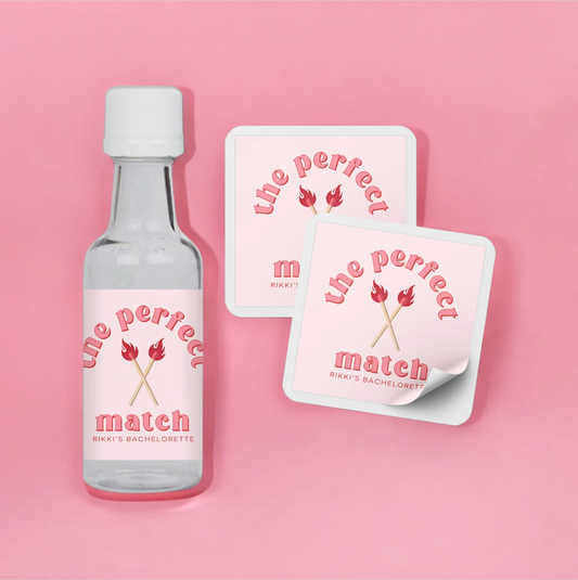 Perfect Match Bachelorette Party Mini Liquor Label - Pink and Red