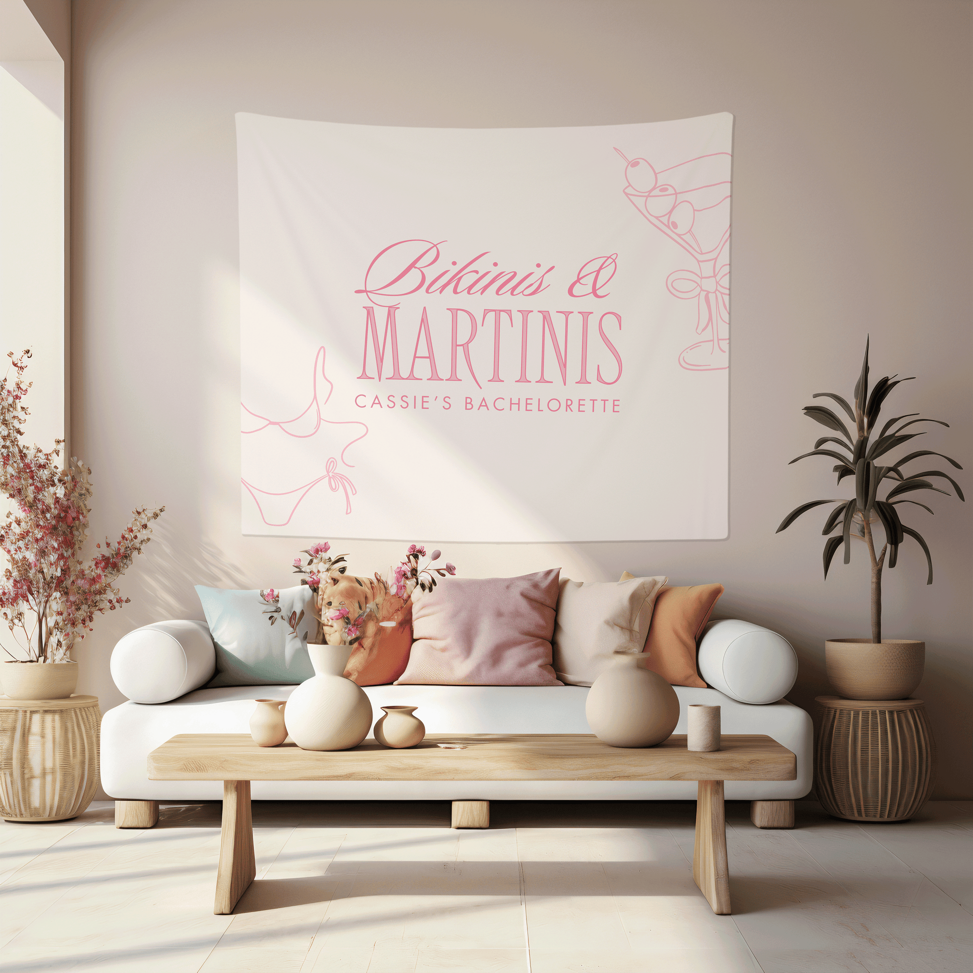Make waves at your beach-themed bachelorette bash with our 'Bikinis and Martinis' bachelorette banner! Perfect for soaking up the sun and sipping on cocktails, this welcome sign the scene for a fun-filled celebration by the sea. Featuring vibrant colors and beachy vibes, it's the ultimate accessory for your seaside soiree.