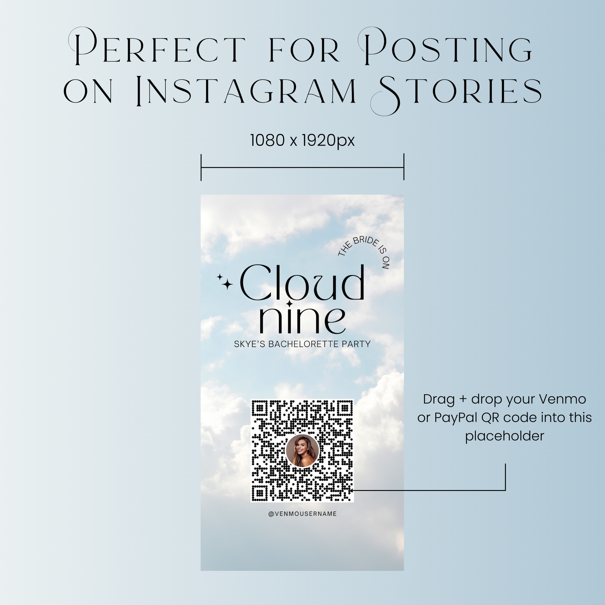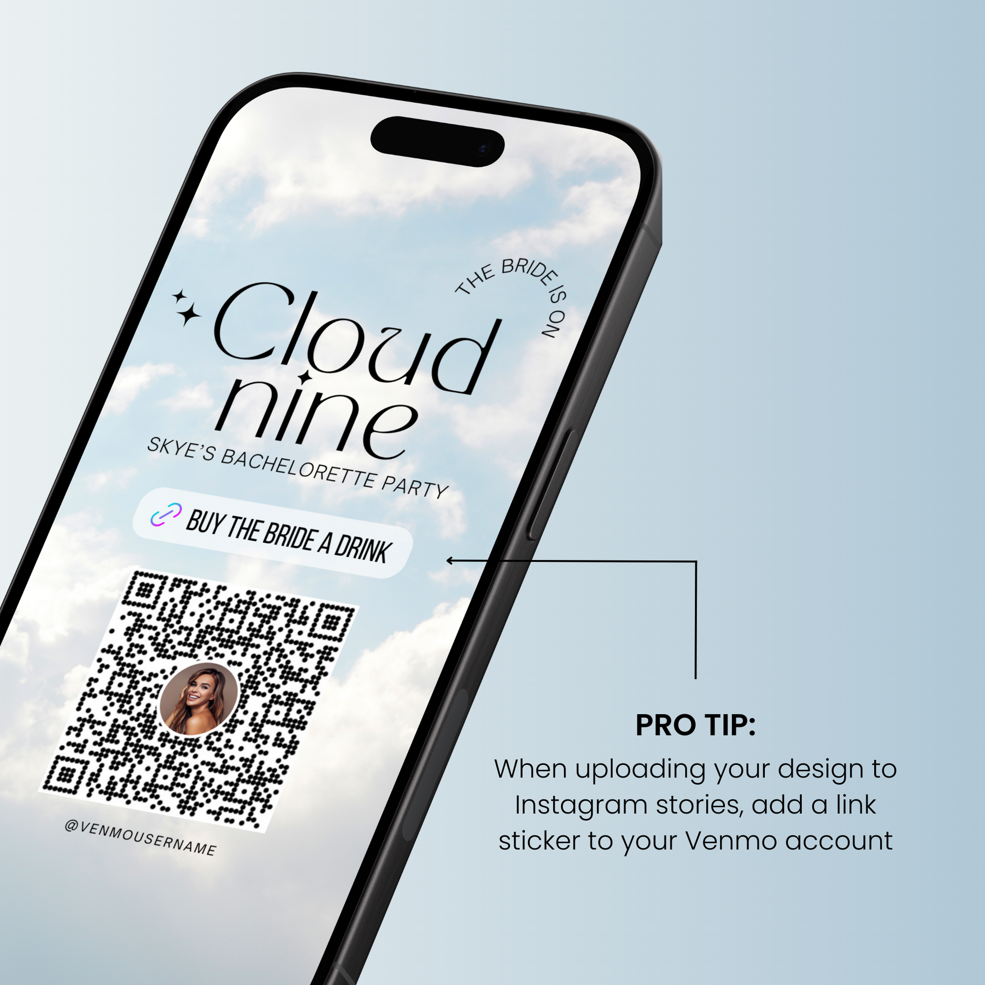 Add a special touch to your bachelorette party with this customizable Buy the Bride a Drink template for Instagram stories! Edit & customize the design within Canva to create an eye-catching Venmo/Cash App/PayPal QR code graphic in minutes.