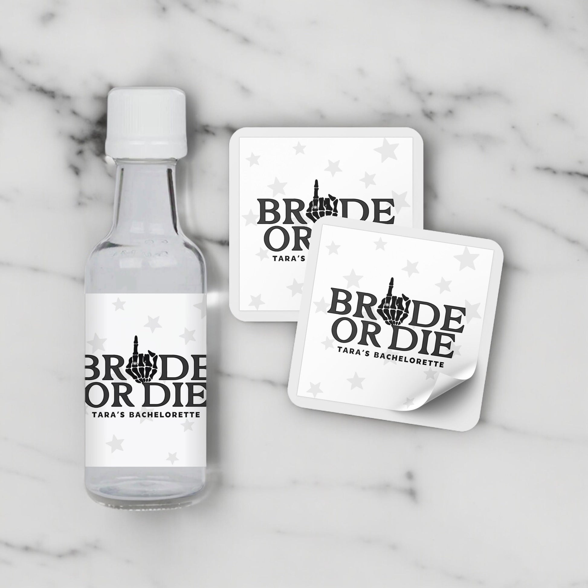Get ready for a spooky good time with our 'Bride or Die' bachelorette mini liquor label, perfect for a Til Death Do Us Party-themed celebration. This sticker label also serves as an adorable inclusion for bachelorette gift bags, adding a personalized touch. Gather your ghoul-friends, raise a glass, and make this bachelorette party one that's 'to die for'!