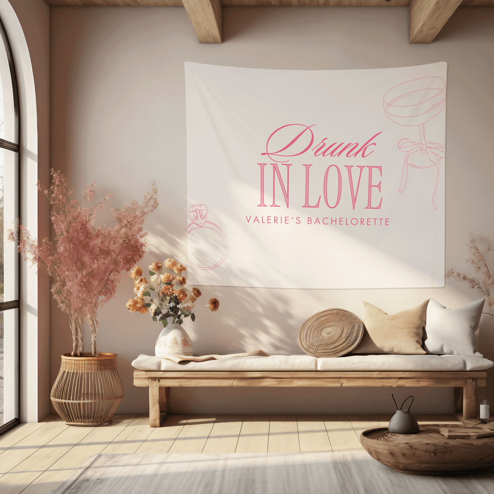 Toast to love and laughter with our 'Drunk in Love' bachelorette party banner, perfect for your pink and red themed celebration! Whether you're sipping on bubbly or dancing the night away, this banner sets the stage for unforgettable moments with your girls. Featuring playful shades of pink and red, it's the ultimate accessory for your love-filled festivities.