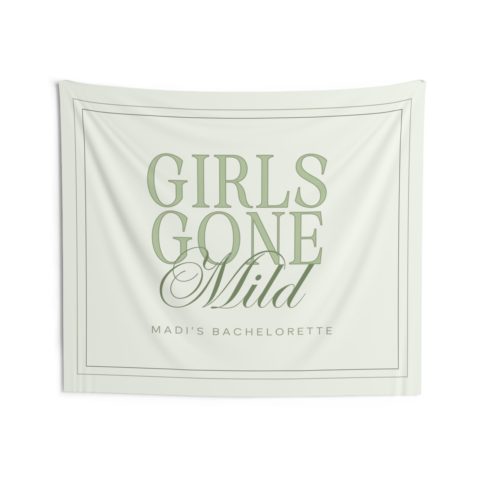 Prepare to relax and unwind with our sage green 'Girls Gone Mild' Bachelorette Party Banner. This banner sets the tone for a blissful retreat, featuring soft hues and delicate design elements to enhance your celebrations. Whether you're enjoying facials, manicures, or simply lounging in cozy pajamas, this banner adds a touch of elegance to your bachelorette soirée.
