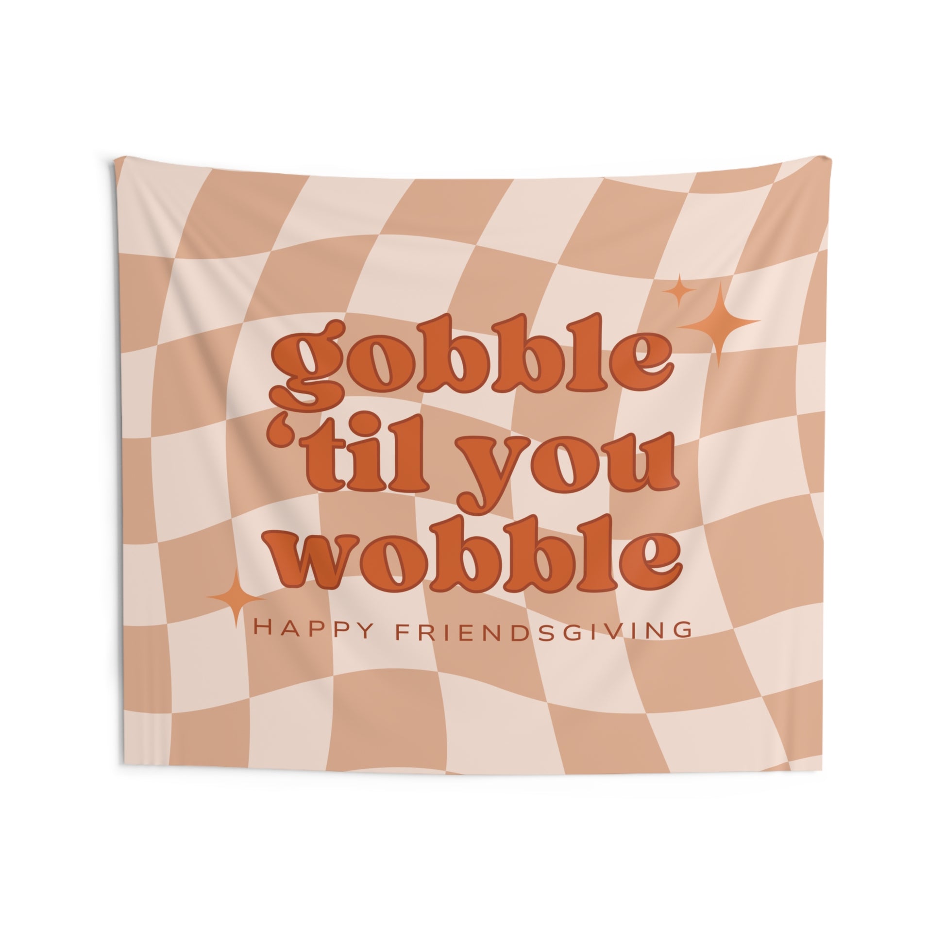 Get ready to gobble til you wobble with this funny Friendsgiving party banner. This aesthetic banner makes for the perfect party backdrop for photos and sets the scene for a fall celebration surrounded by good food and even better company.