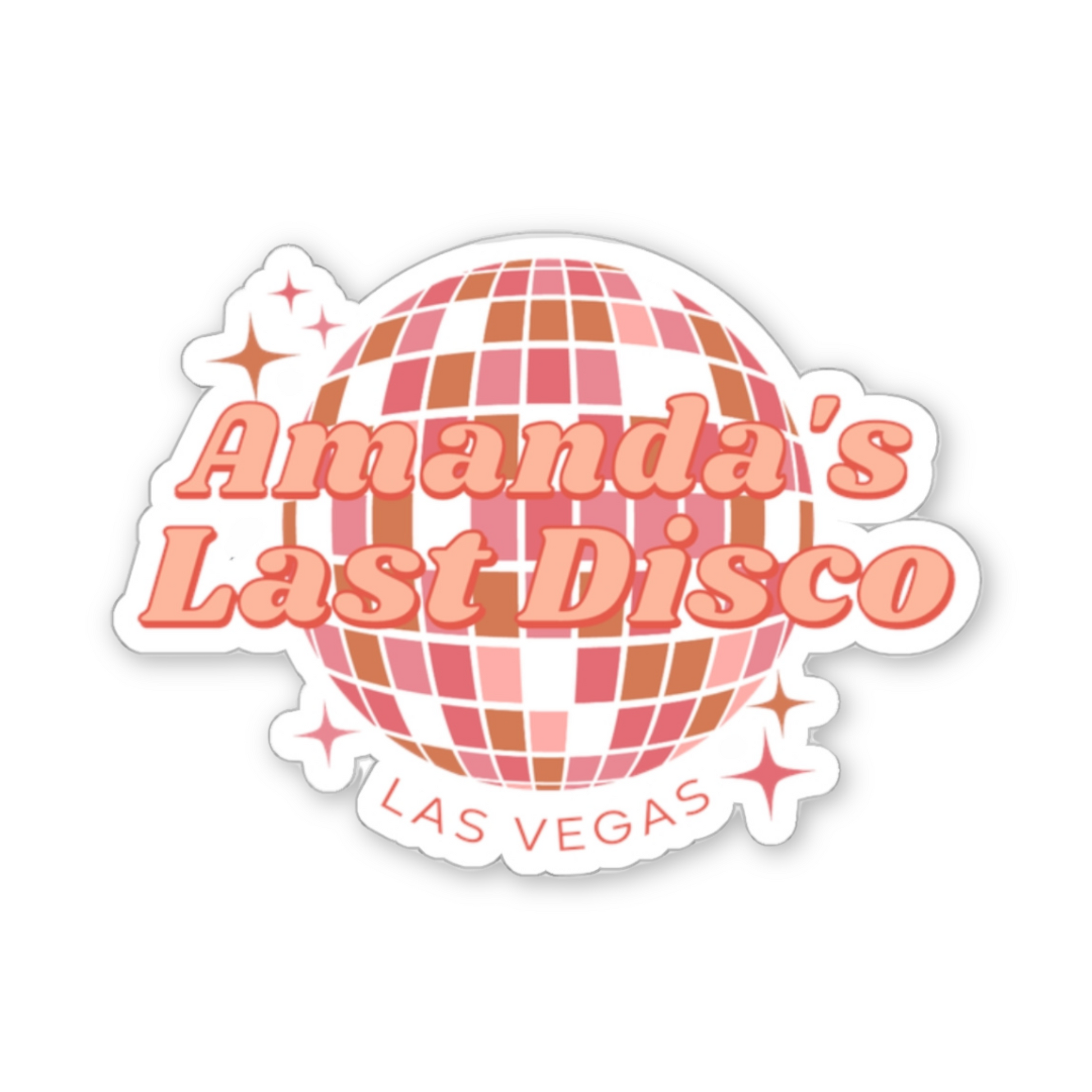 Get ready to groove and glitter with our pink 'Last Disco' bachelorette party sticker. Step back in time to the era of glittering disco balls and funky beats as you dance the night away with the bride-to-be. This groovy bachelorette sticker sets the stage for a night of disco fever, featuring vibrant shades of pink and retro elements to elevate your party atmosphere.