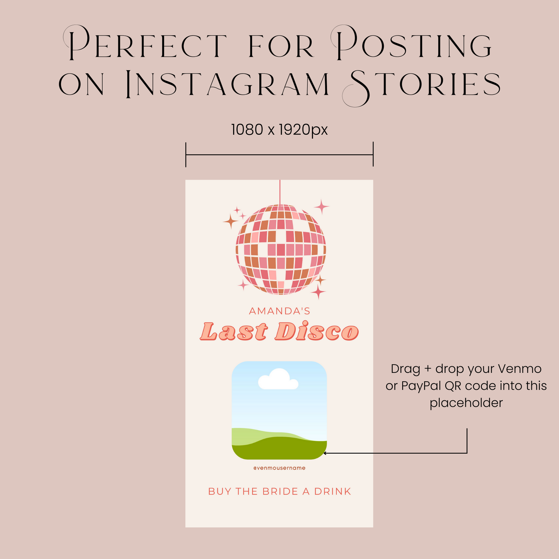 Add a special touch to your bachelorette party with this customizable Buy the Bride a Drink template for Instagram stories! Edit & customize the design within Canva to create an eye-catching Venmo/Cash App/PayPal QR code graphic in minutes.