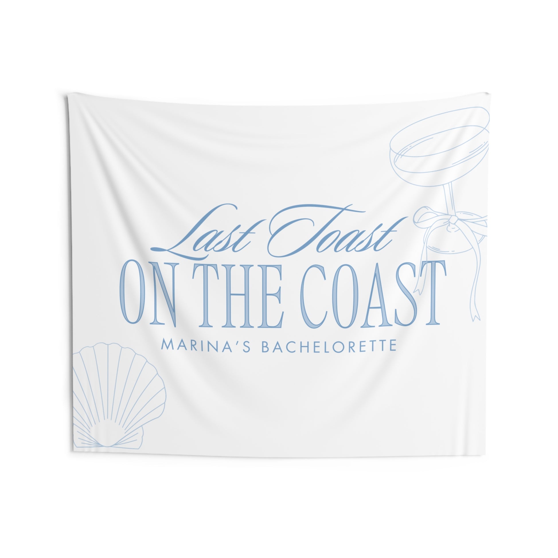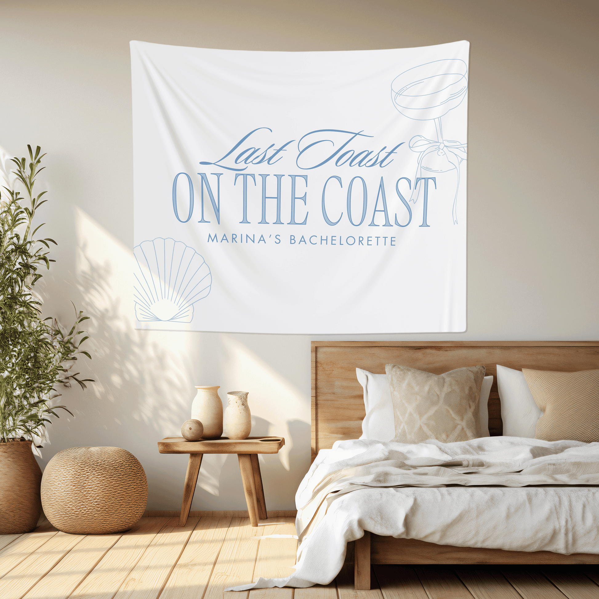 Raise a glass to the bride-to-be with our 'Last Toast on the Coast' banner, tailor-made for a coastal bachelorette party celebrations to remember! Gather your beach-loving crew and soak up the sun as you bid farewell to single life with style. This banner sets the stage for seaside fun, and serves as the perfect photo backdrop or welcome sign.