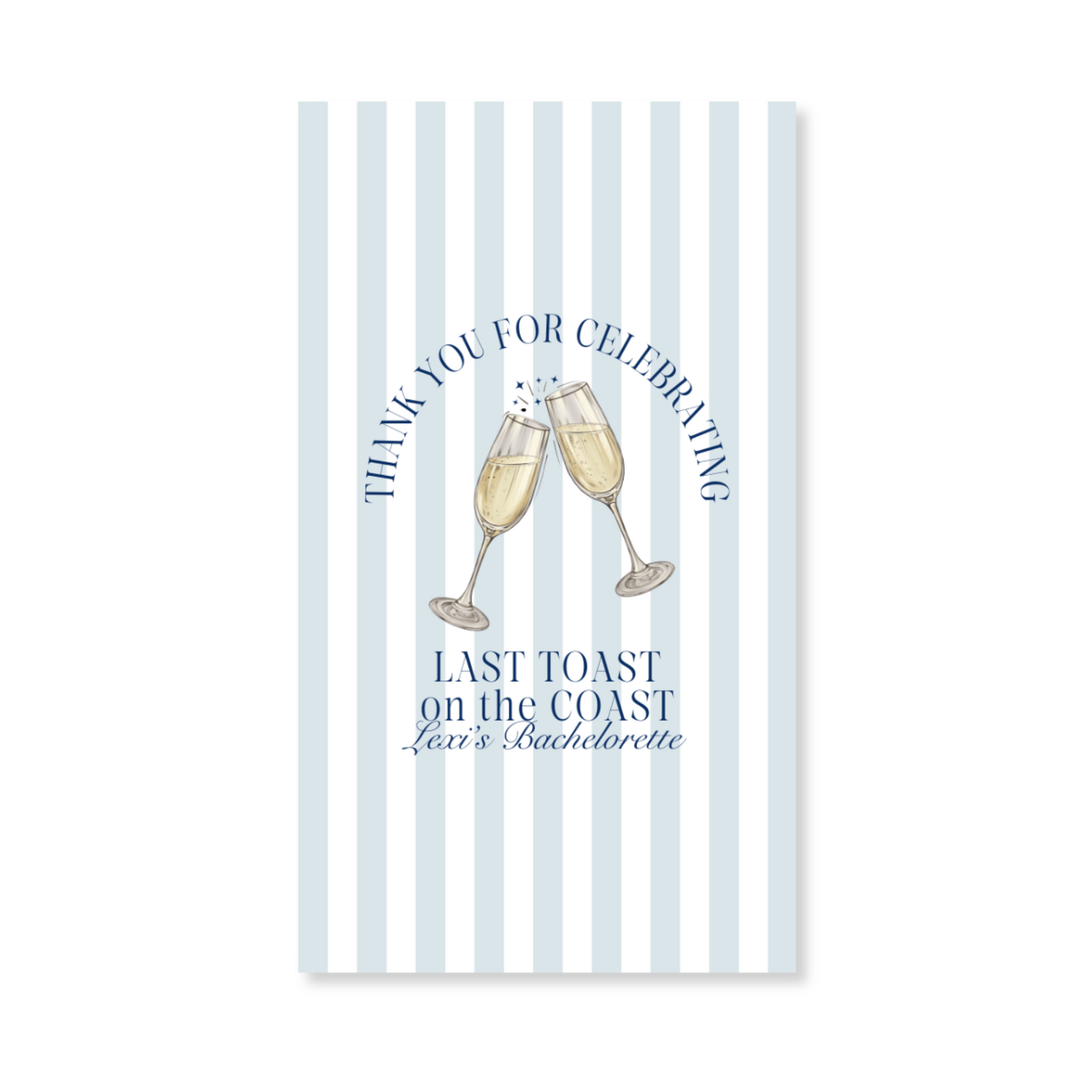 Make waves at your beach-themed bachelorette party with our 'Last Toast on the Coast' gift tag! With vibrant coastal designs and nautical fonts, each gift tag adds a splash of personality to your bachelorette festivities. Cheers to sun, sand, and an epic celebration with your bridal party!