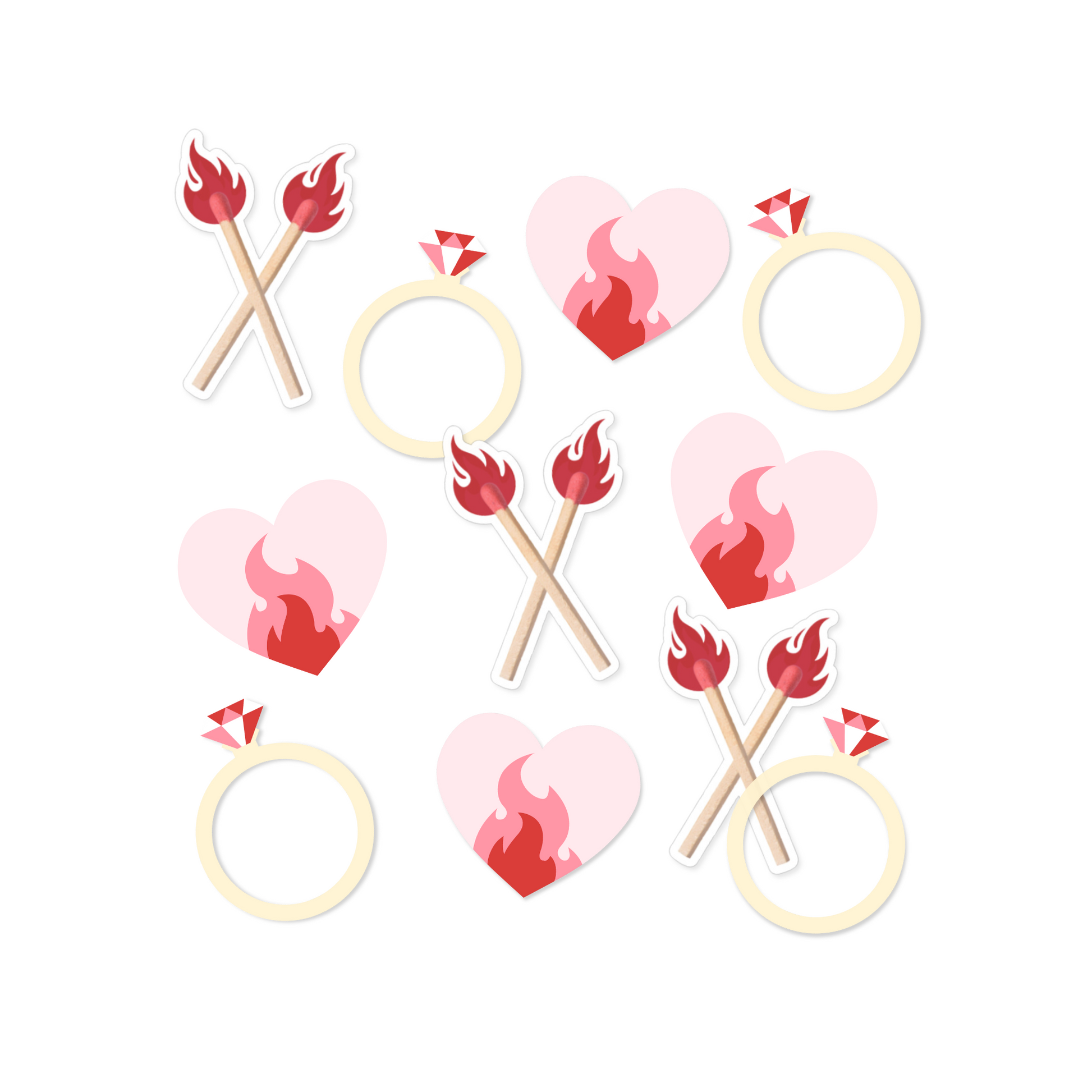 Spark some fiery fun with our 'Perfect Match' mini confetti, tailored for pink and red-themed bachelorette celebrations. She found her perfect match — now ignite an unforgettable celebration with this decorative table scatter that serves as an adorable addition to any bachelorette decor, adding a personalized touch.