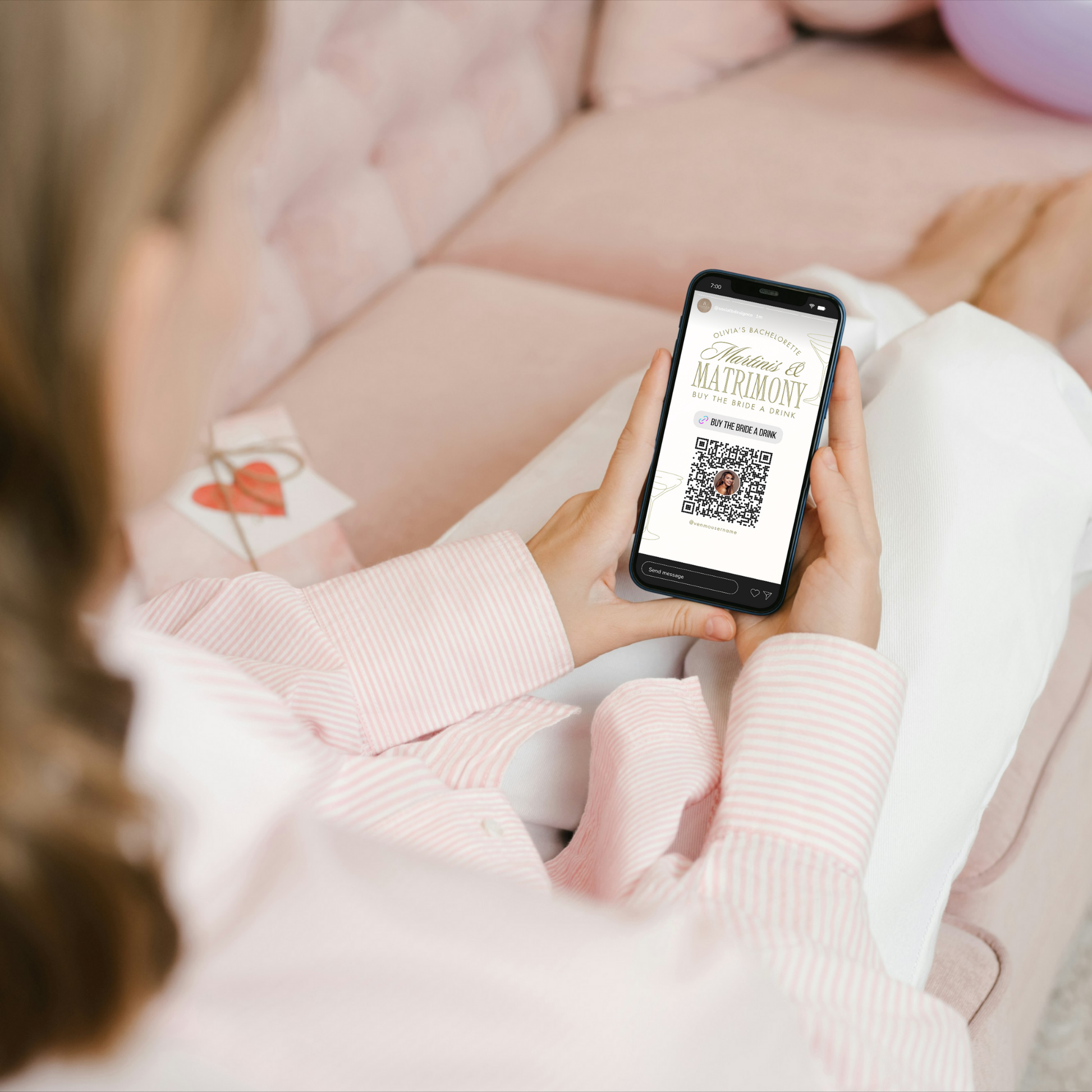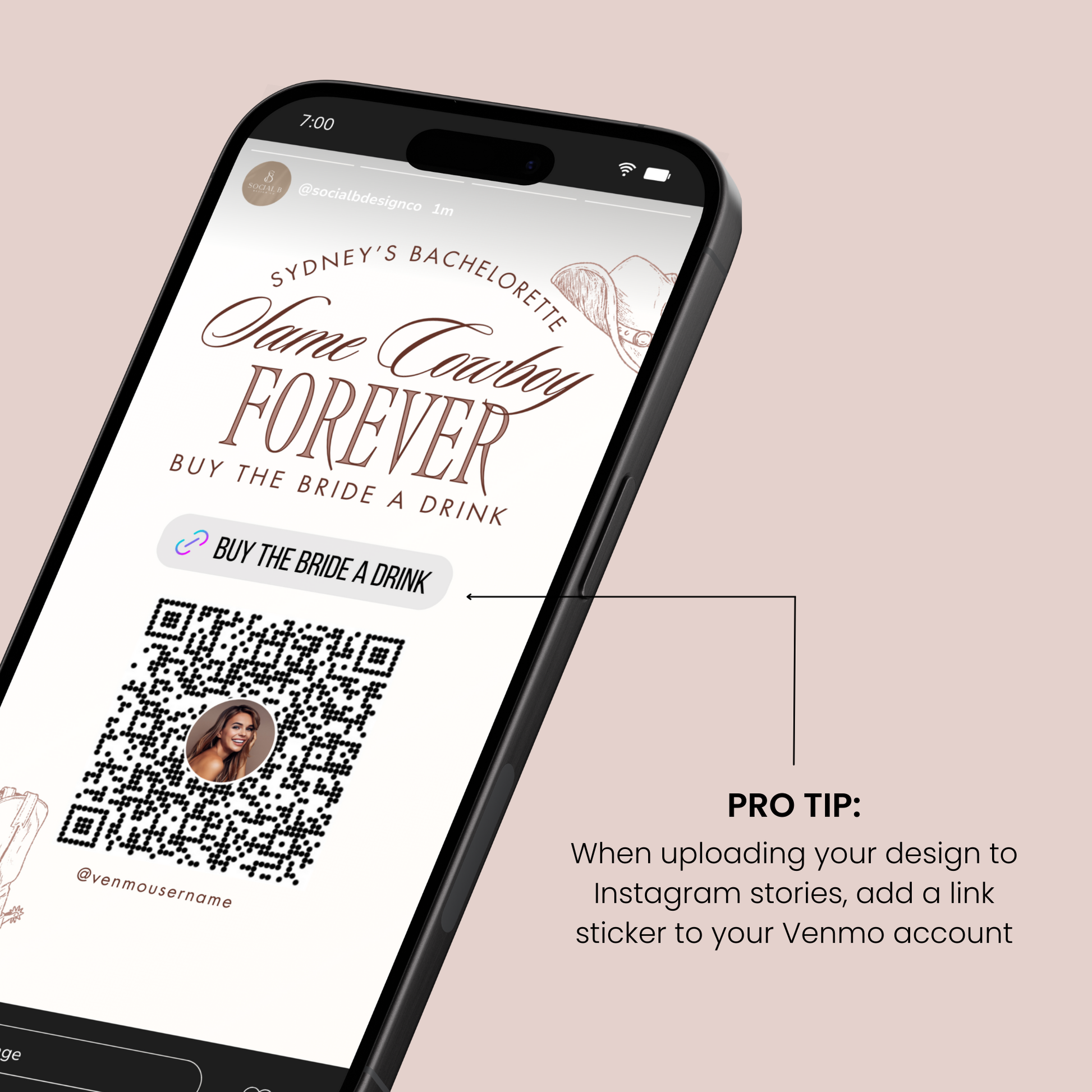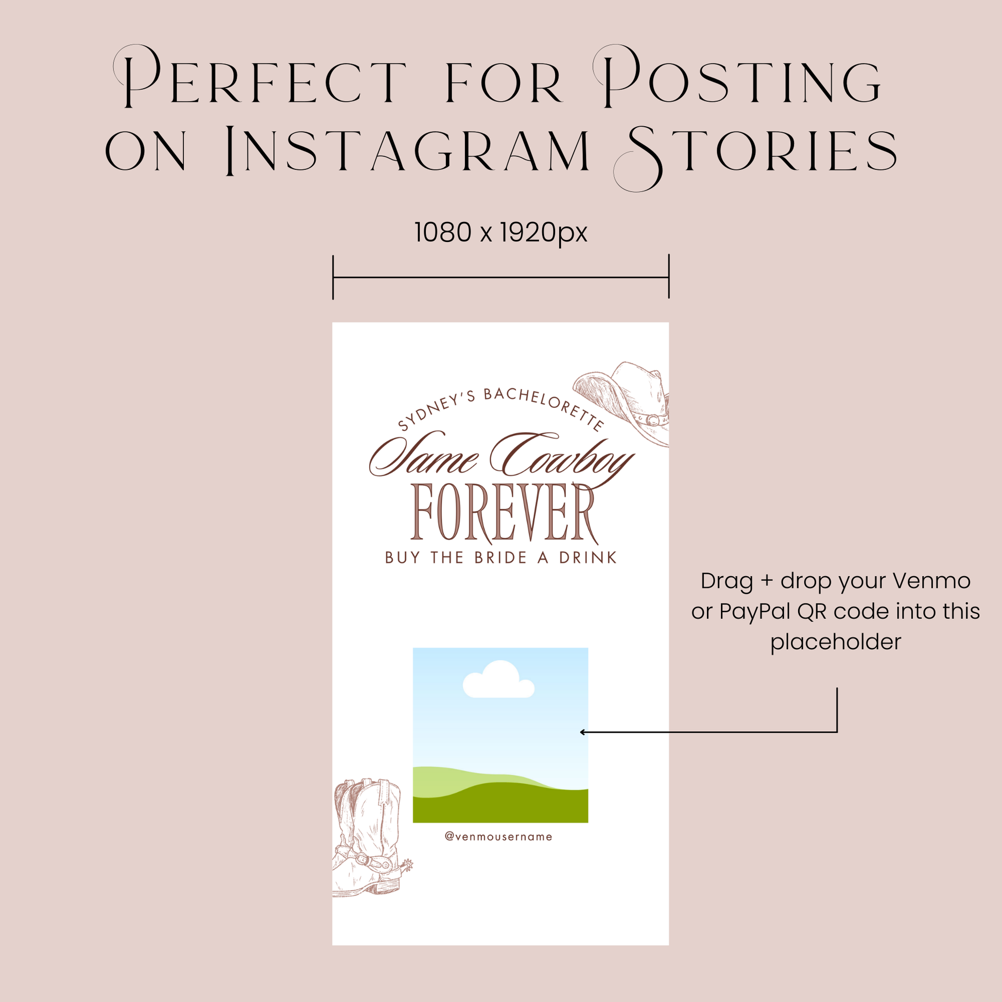 Add a special touch to your bachelorette party with this customizable Buy the Bride a Drink template for Instagram stories! Edit & customize the design within Canva to create an eye-catching Venmo/Cash App/PayPal QR code graphic in minutes.