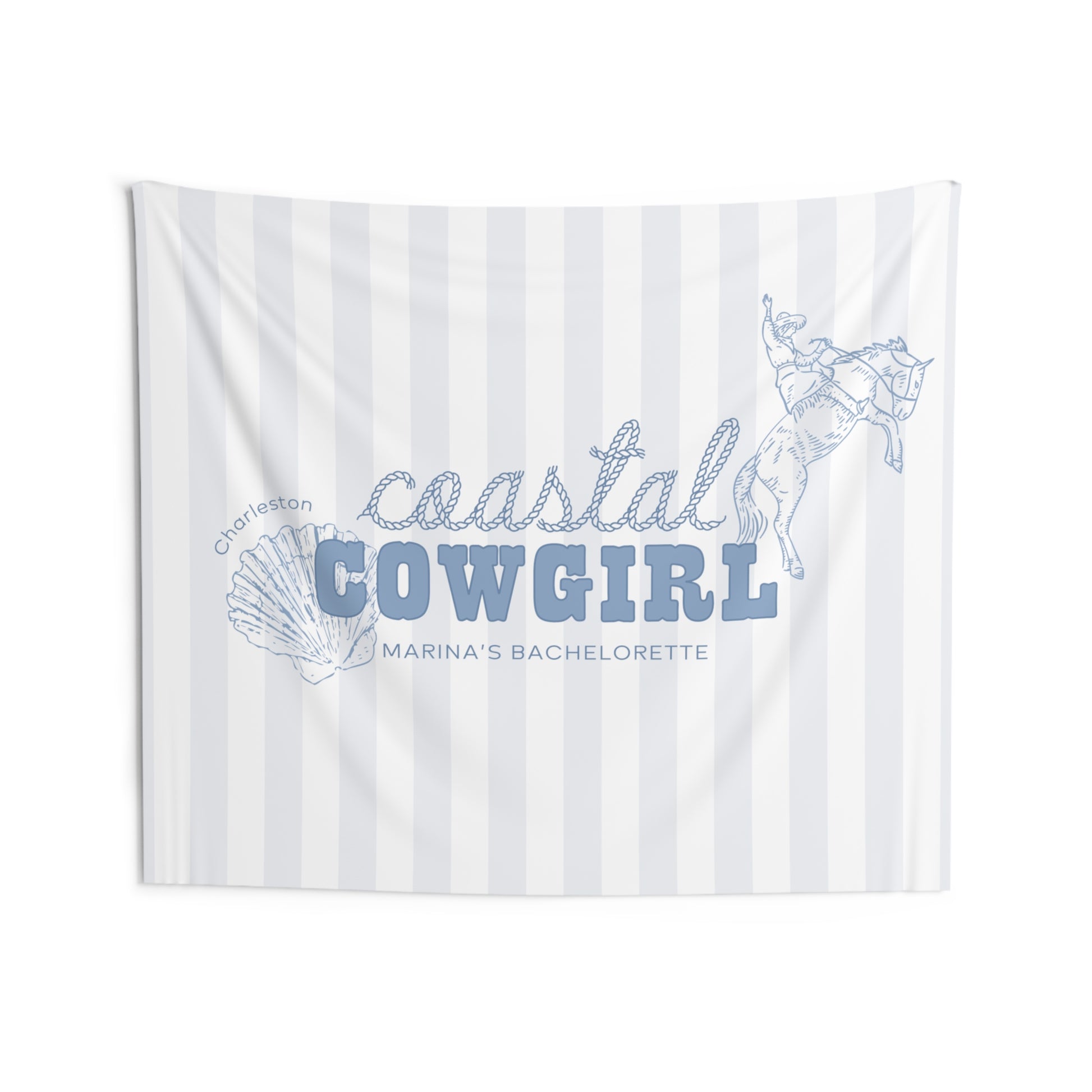 Saddle up for a seaside soirée with our striped 'Coastal Cowgirl' bachelorette party banner! Perfect for your coastal cowgirl themed bachelorette, this banner features designs that capture beach vibes with a touch of wild west flair. Round up your girls for an unforgettable celebration – because every bride-to-be deserves a coastal getaway to remember!