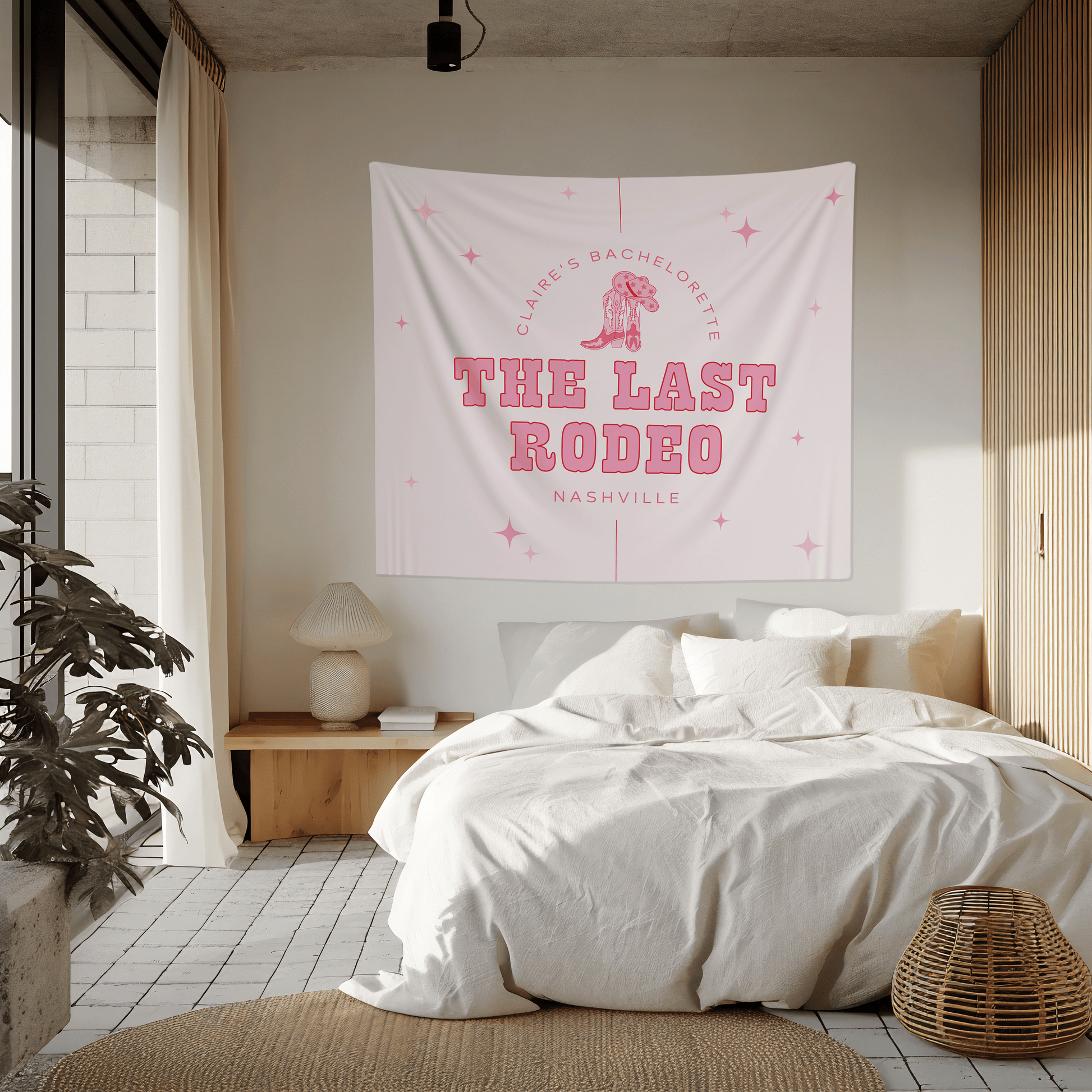 Saddle up for the bride's last ride with our pink 'Last Rodeo' banner, perfect for western-themed bachelorette celebrations! This banner will make her last rodeo one to remember, and serves as the perfect photo backdrop or welcome sign for Nashville bachelorette parties & beyond.