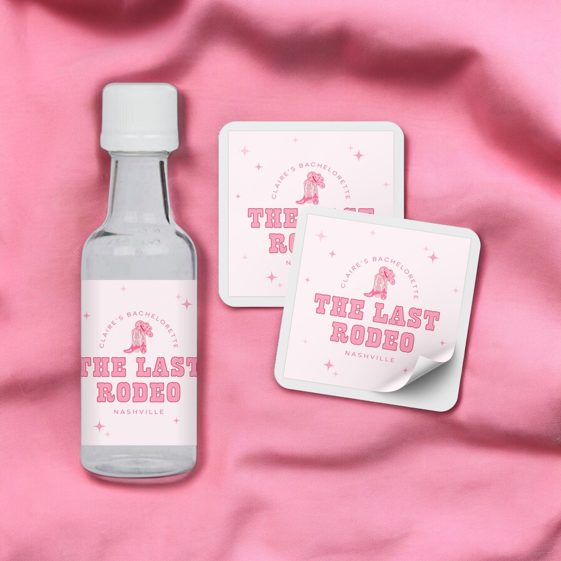 Saddle up for the bride's last ride with our pink 'Last Rodeo' shooter label, perfect for western-themed bachelorette celebrations! This mini liquor label will make her last rodeo one to remember, and serves as an adorable inclusion for bachelorette gift bags, adding a personalized touch.